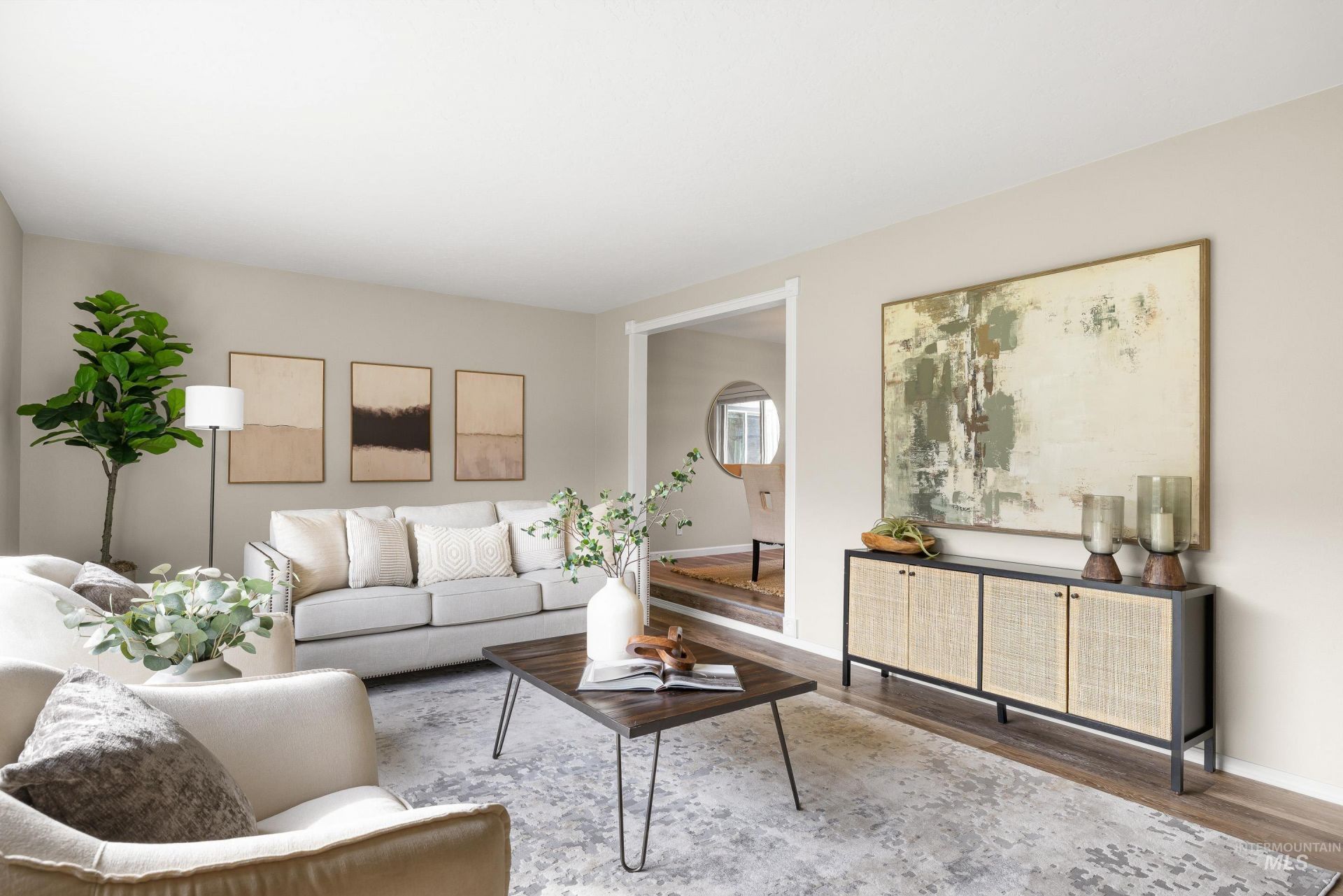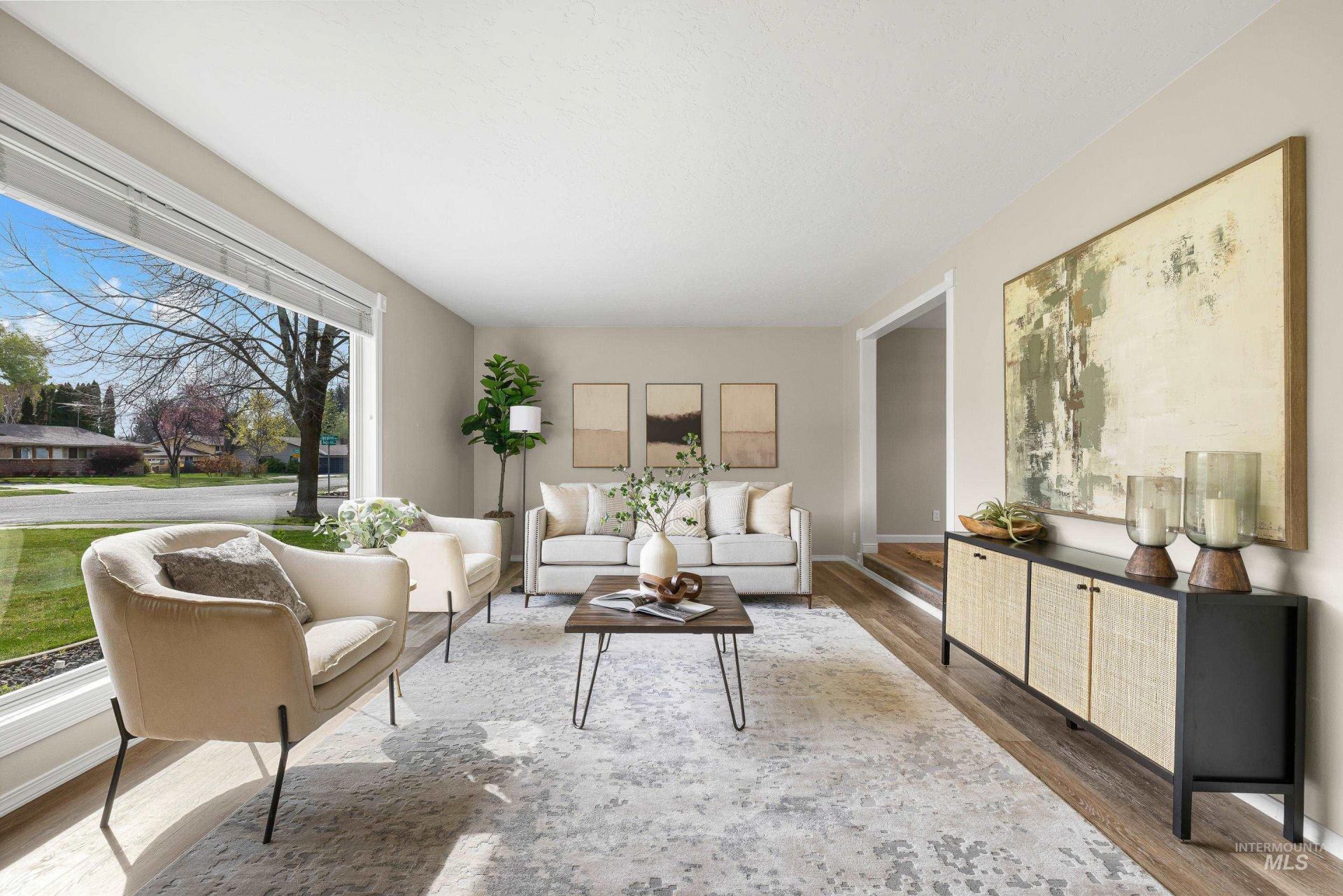 Set on a generous corner lot in a charming, established neighborhood with no HOA, this move-in ready gem is nestled against the 5th hole of Eagle Hills Golf Course, minutes from downtown Eagle, and within easy walking distance to parks and the clubhouse. Fresh, neutral paint, updated lighting, and durable flooring enhance the homes timeless and comfortable appeal. An expansive picture window frames the idyllic, tree-lined street and fills the living space with natural light. A well-appointed kitchen offers ample prep space, beautiful wood cabinetry, and convenient access to the formal dining room?perfect for seamless hosting and gathering. Light-filled master features an attached ensuite bath and dual closets for everyday convenience and added storage. Centered around a nostalgic brick fireplace, the downstairs bonus room provides a versatile space ideal for a media room, play area, or teen hangout. With an additional full bath and bedroom, the lower level offers potential for multi-generational living or private guest quarters. Step through the enclosed sunroom to an impressive backyard retreat with picturesque golf course views. Enjoy evenings beneath the covered patio, summer bonfires around the built-in fire pit, or BBQs and lawn games on the lush, green grass.